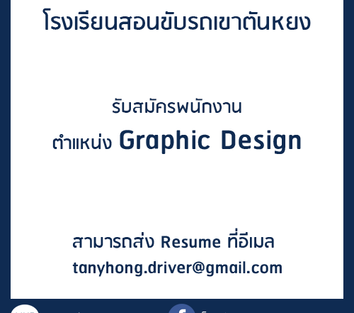 โรงเรียนสอนขับรถเขาตันหยง เปิดรับสมัครพนักงานตำแหน่ง Graphic Design ประจำสาขา สิงหนคร คุณสมบัติ  วุฒิการศึกษา ปวช. - ป.ตรี สามารถใช้โปรแกรม Adobe Photoshop และ Illustrator