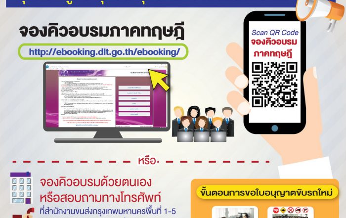 กรมการขนส่งทางบก เพิ่มขีดความสามารถการให้บริการ ยกระดับเว็บไซต์ DLT e-Booking รองรับการจองคิวอบรมภาคทฤษฎีเพื่อขอรับใบอนุญาตขับรถล่วงหน้าได้ทุกสำนักงานขนส่งทั่วไทย เลือกวันเวลาได้ตามความต้องการ สะดวกสบาย ตอบโจทย์ไลฟ์สไตล์ยุคดิจิทัล เพิ่มความมั่นใจด้วยบริการจากภาครัฐที่มีมาตรฐานและปลอดภัย ทำให้ประชาชนสามารถเตรียมความพร้อมก่อนเข้าสู่กระบวนการขอรับใบอนุญาตขับรถได้อย่างสะดวก ทั้งนี้ เพื่ออำนวยความสะดวกให้ประชาชนมากยิ่งขึ้นกรมการขนส่งทางบกจึงพัฒนาเว็บไซต์ DLT e-Booking ให้สามารถจองคิวอบรมภาคทฤษฎีล่วงหน้ากับสำนักงานขนส่งได้ทั่วประเทศ
